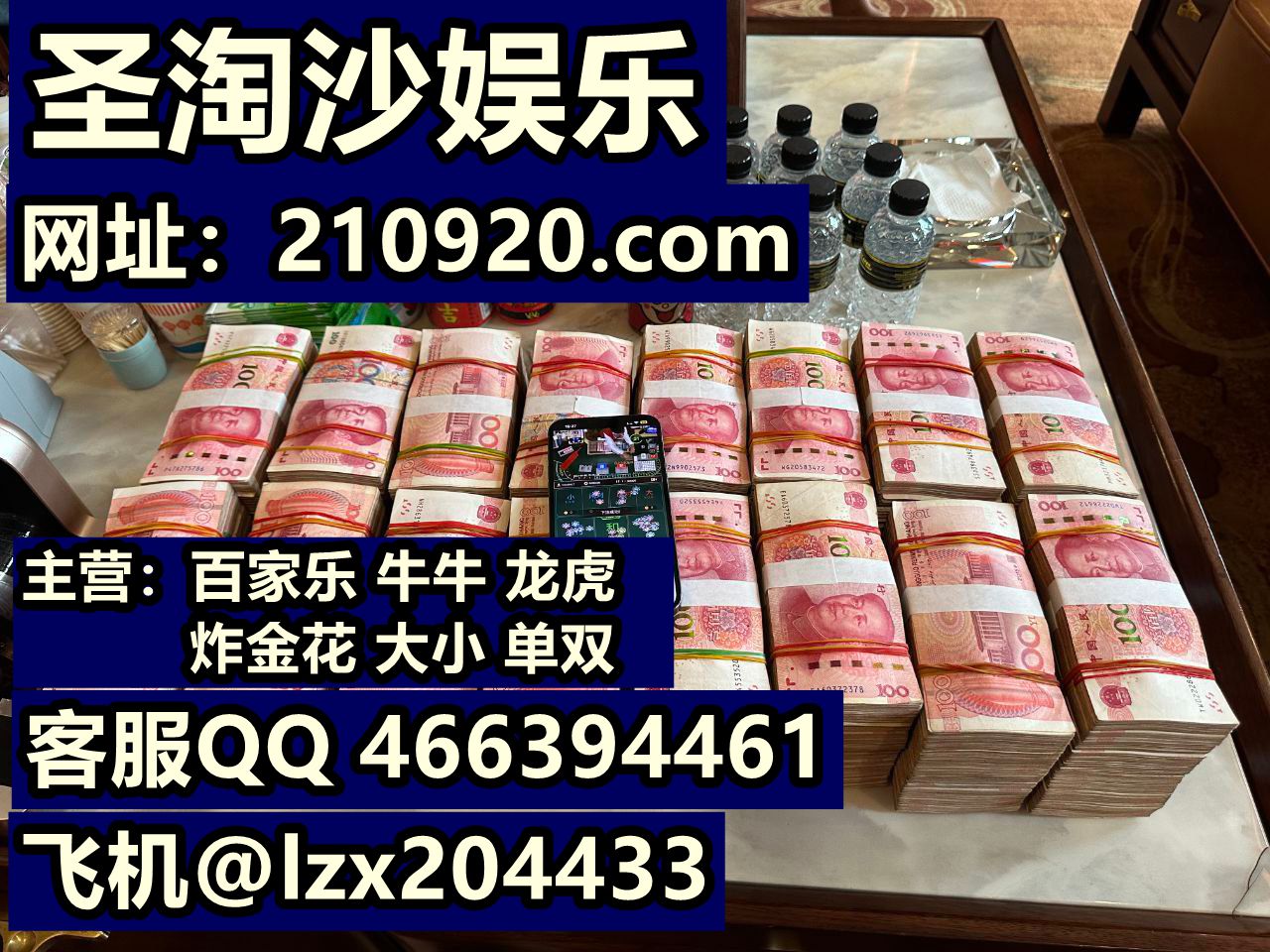 主营:百家乐 牛牛 龙虎 炸金花 推筒子 大小 单双等多种游戏娱乐赌博